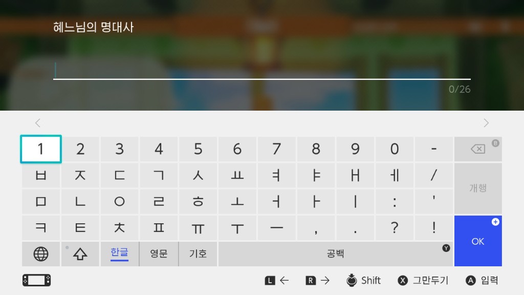 그러니 한글로 스위치 본체에 잘 불러와 지길래 되겠다 했지만, 막상 게임에서는 한글이 깨져 보이더라.