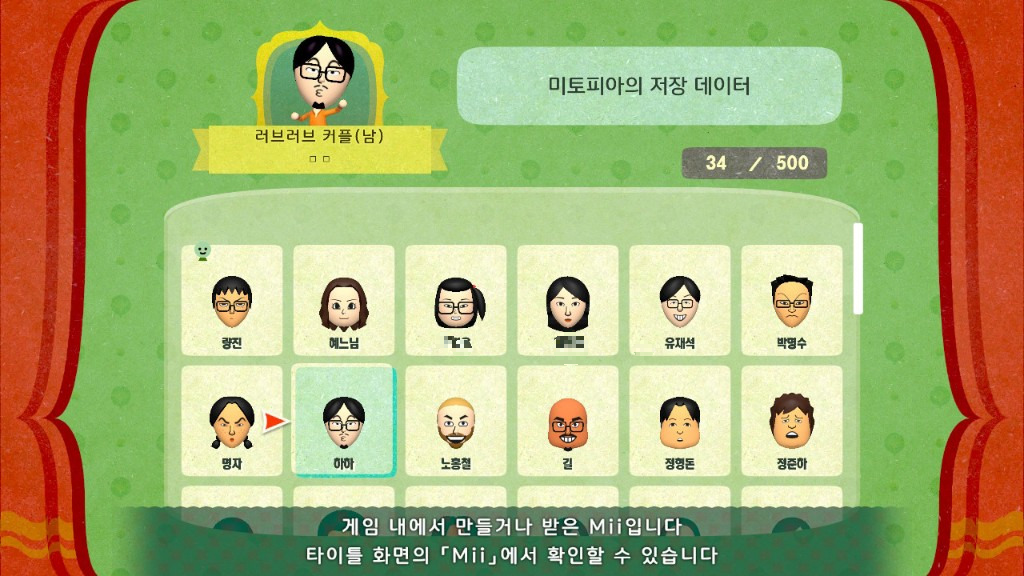 배역은 그냥 넘어가고 게임을 계속 진행하다가 동료를 지정하는 부분이 나오는데, 그때 선택한 Mii는 또 한글이 잘 불러와진다.
