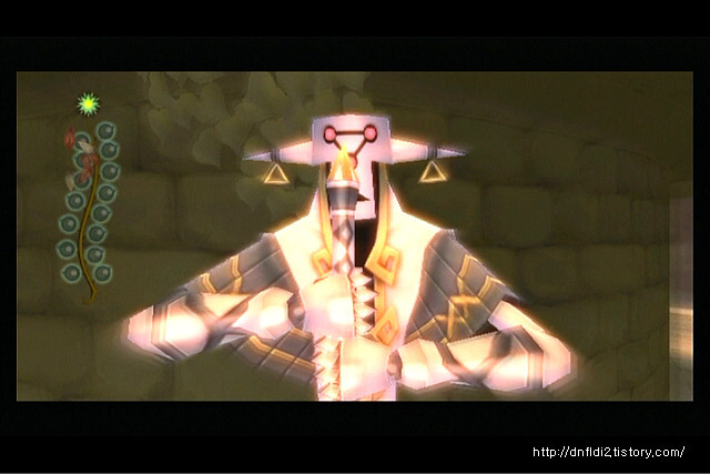 다만 전체적인 스토리에 쫄깃함이라고는 그닥 없다. 딱 눈에 보이는 스토리. 뭐 닌텐도 게임이야 원래 그렇긴 하지만 바로 전 작인 황공은 그래도 스토리가 쫄깃한 맛이 있었다. 어느날 갑자기 쌩뚱맞게 적이 마을을 급습하여 소꼽친구와 애들을 납치하고 찾으러 갔더니만 갑자기 늑대로 변해버리질 않나, 이상하게 생긴 건방진 여자 캐릭터(미드나)가 동료가 되어 이런저런 수모를 겪고, 정말 흥미로운 스토리였다. 무엇보다 미드나가 왜 이렇게 되었는지 목적이 무엇인지 등이 밝혀지면서 점점 스토리에 대한 몰입감이 강해지는 맛이 있었다. 한마디로 쫄깃함이 있었다.