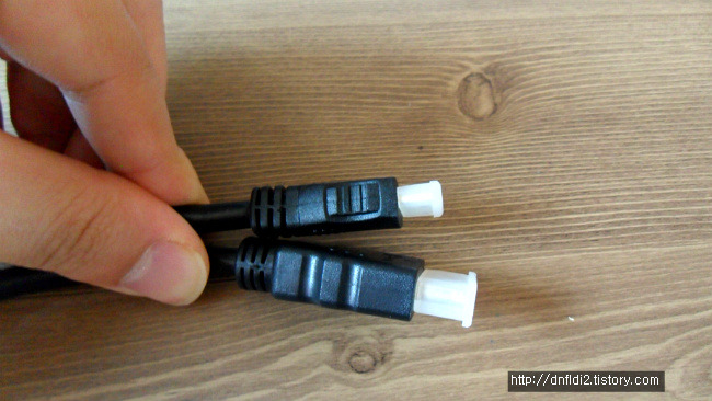 이걸 그냥 사진으로만 보면 미니인지 일반인지 구분하기가 쉽지 않다. 나 역시 당연히 광고에서도 손쉽게 가능하다니 일반 HDMI 케이블 단자라고 생각하고 있었고, 제품 구매 시 짧은(0.5m) HDMI 케이블도 팔길래 가까운 곳에서 연결할 때 편하려고 같이 구매를 했다. 그런데 그 케이블 구매 안했으면 큰일 날 뻔-_-